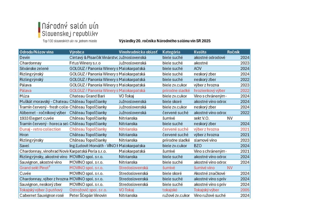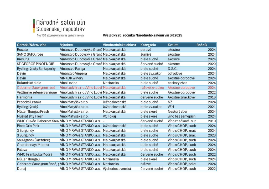 Nové vína v kolekcii Národného salónu vín SR. Výsledky 20. ročníka súťaže Národný salón vín SR 2025